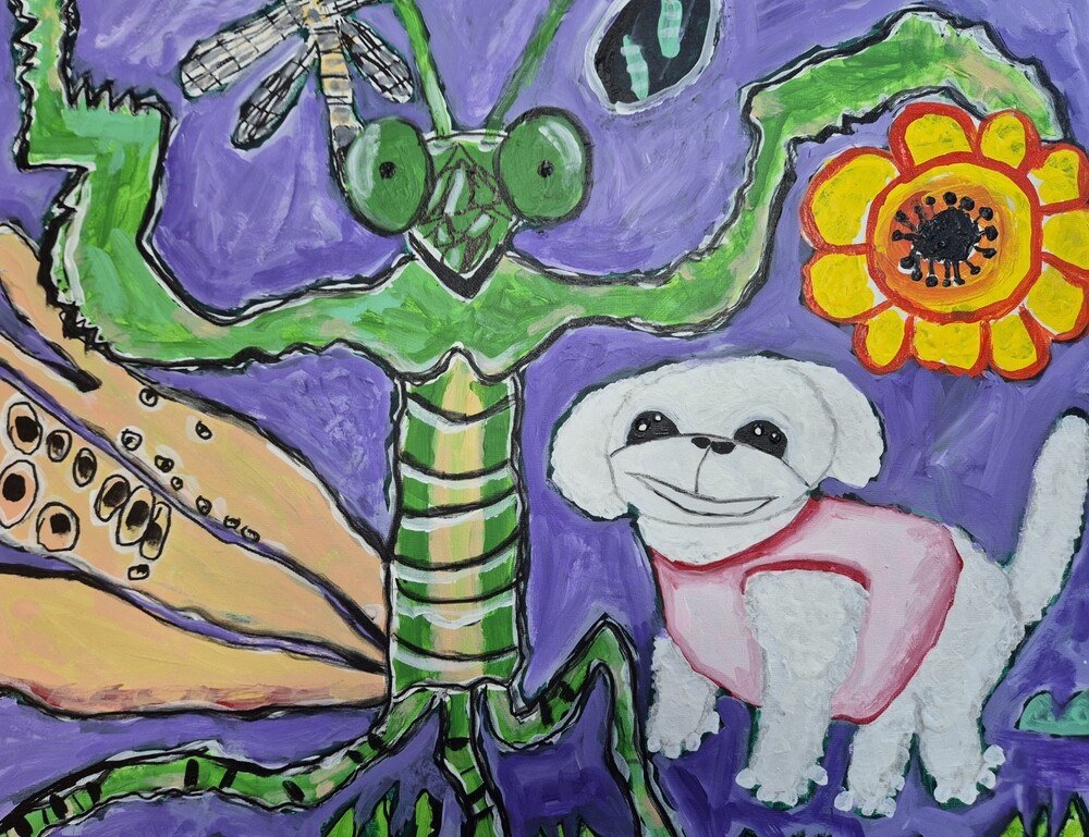 이우진 작가의 ‘첫 만남의 순간’ 작품은 왕사마귀와 강아지 호두가 첫 만남의 설렘을 담은 작품입니다. 두 친구의 시선은 관람객과 연결되며, 호기심과 기대감을 전달합니다. 관람객은 이 작품을 통해 자신의 첫 만남을 회상하고 새로운 만남에 대한 기대감을 느끼게 합니다.
